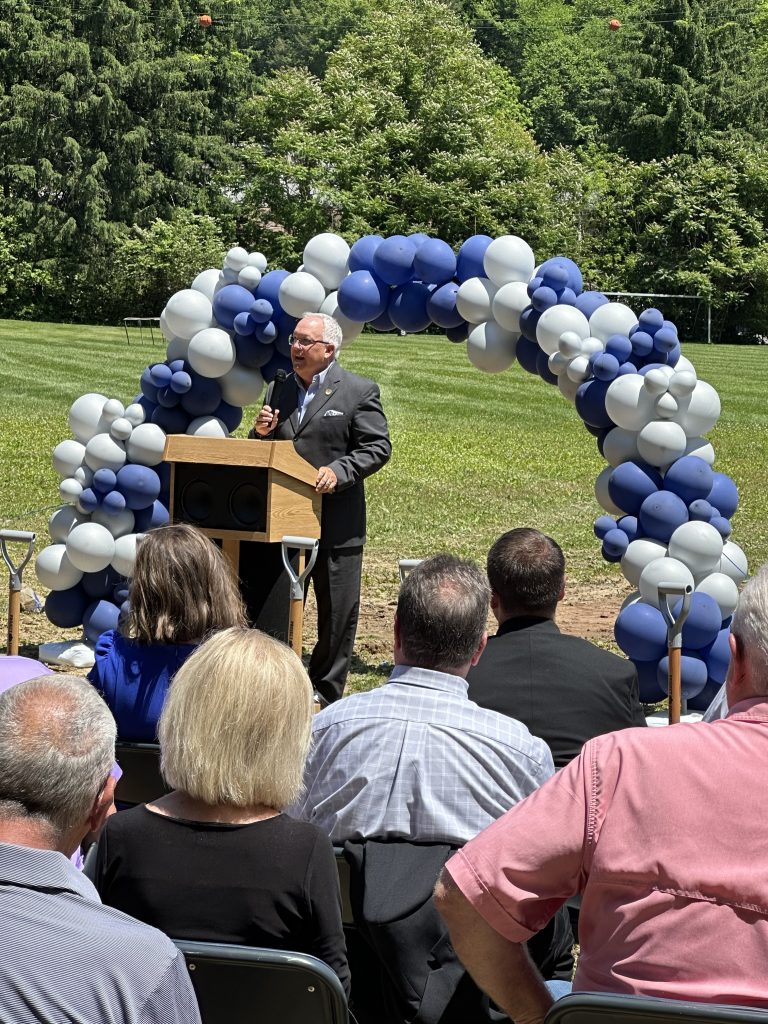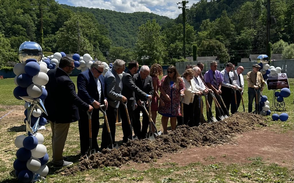 Andy Neptune, Executive Director of the West Virginia School Building Authority, Deirdre Cline, Wyoming County Superintendent, School Board members, dignitaries, community members, faculty and students of Wyoming County Schools joined together to break ground for the new school.