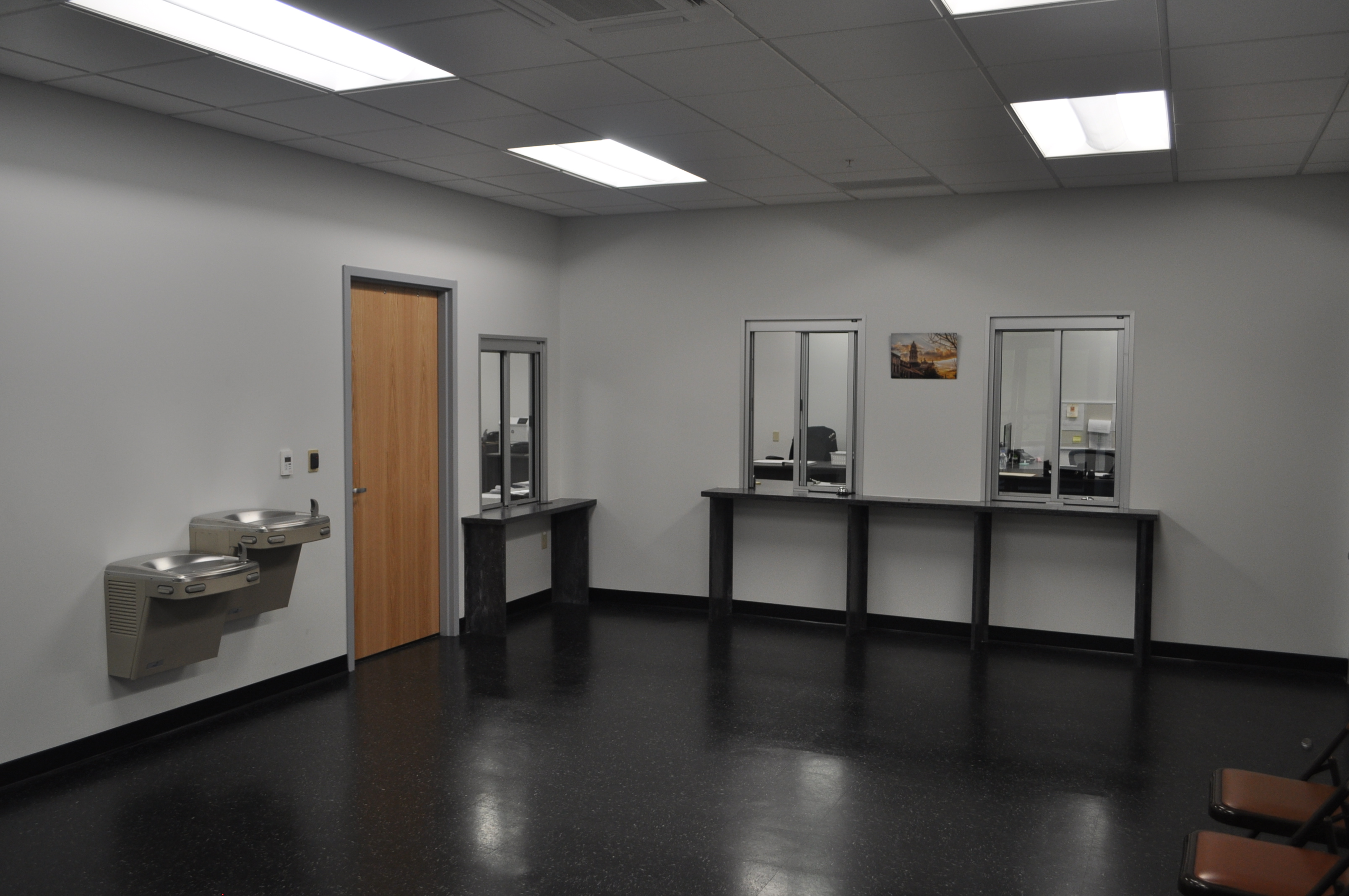 The public space allows access to two large courtrooms, restrooms, an ATM, and small conference rooms for consultation with the Public Defender or private attorneys.