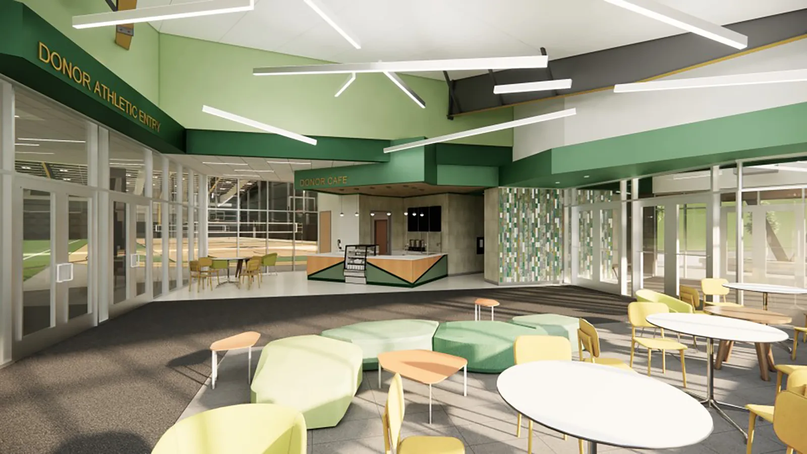 The facility’s flexible design supports far more than athletics. A health and wellness pavilion, meeting rooms, and gathering spaces— along with a health café and smoothie bar—will accommodate educational, cultural, and civic events. With amenities such as basketball and tennis courts, batting cages, and communal lounges, the center is designed to foster holistic well-being, promote student life, and welcome regional visitors to Saint Vincent’s campus.