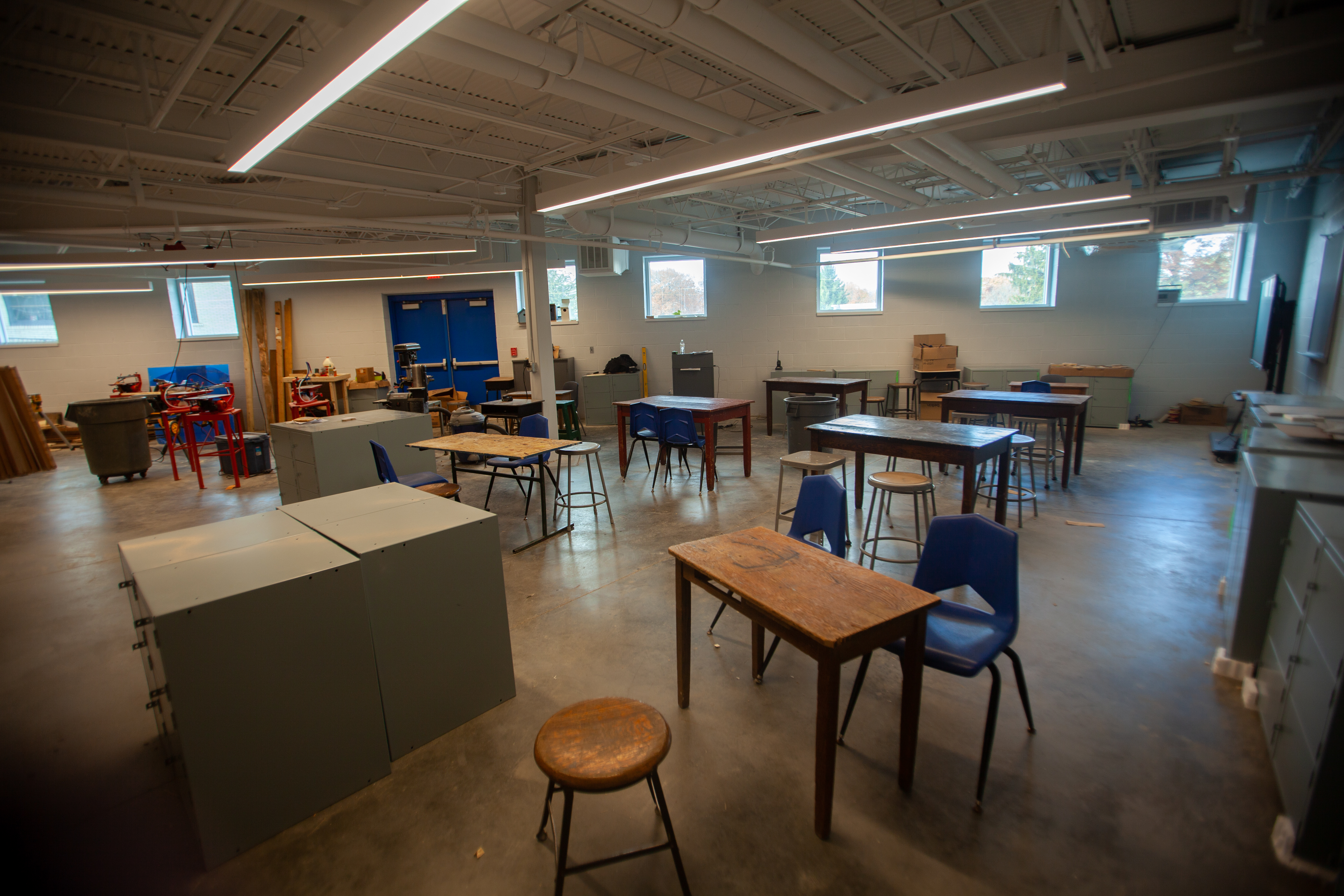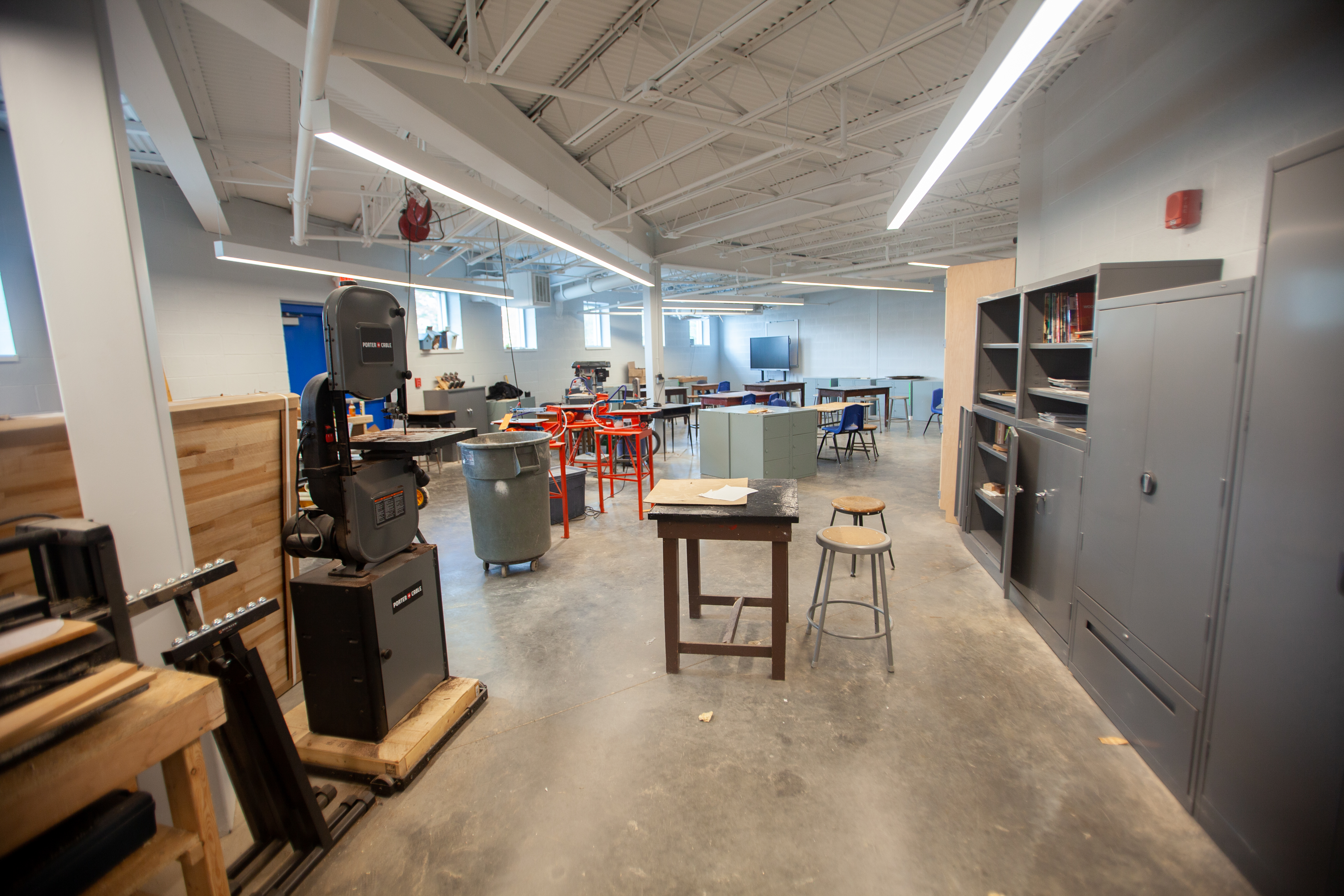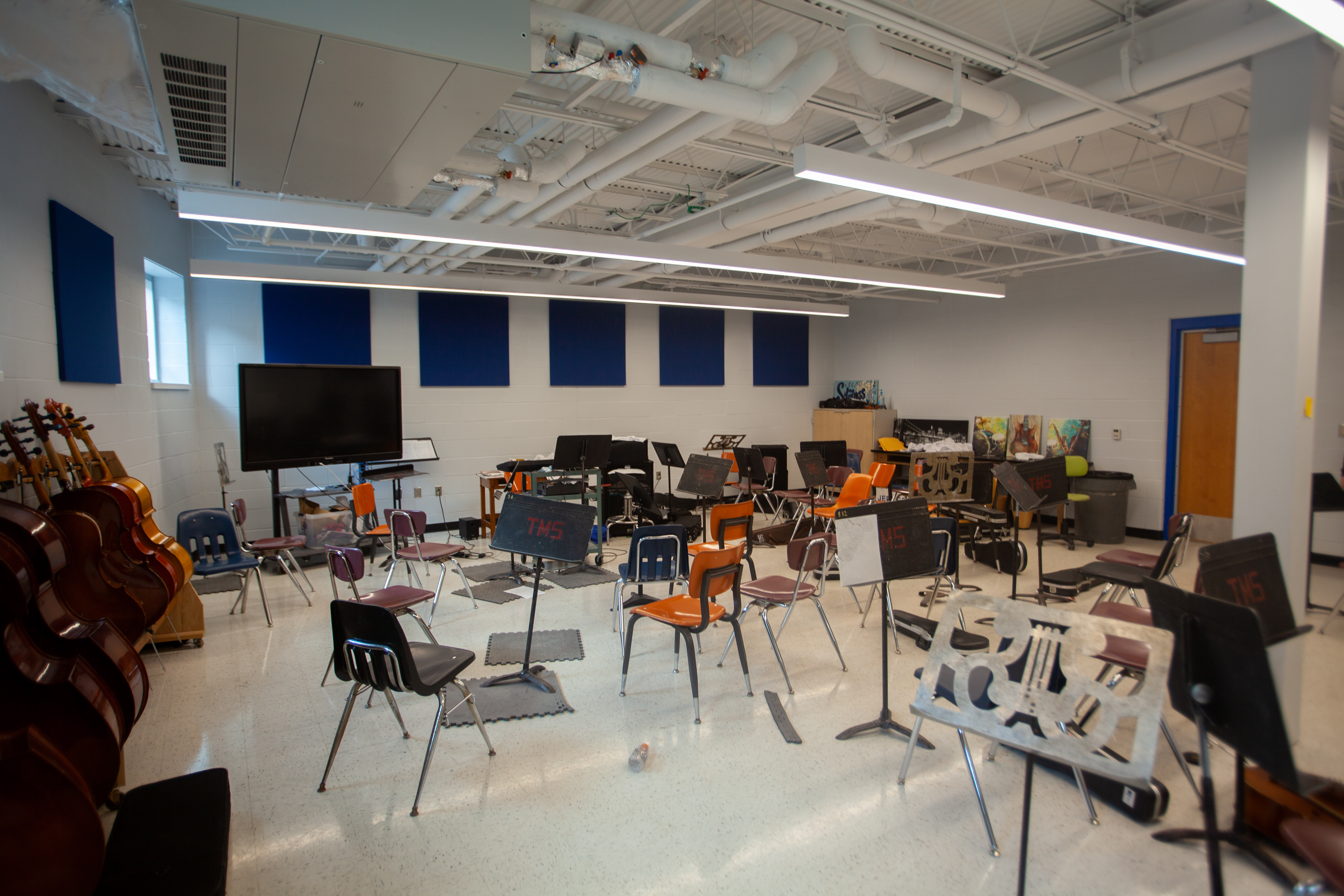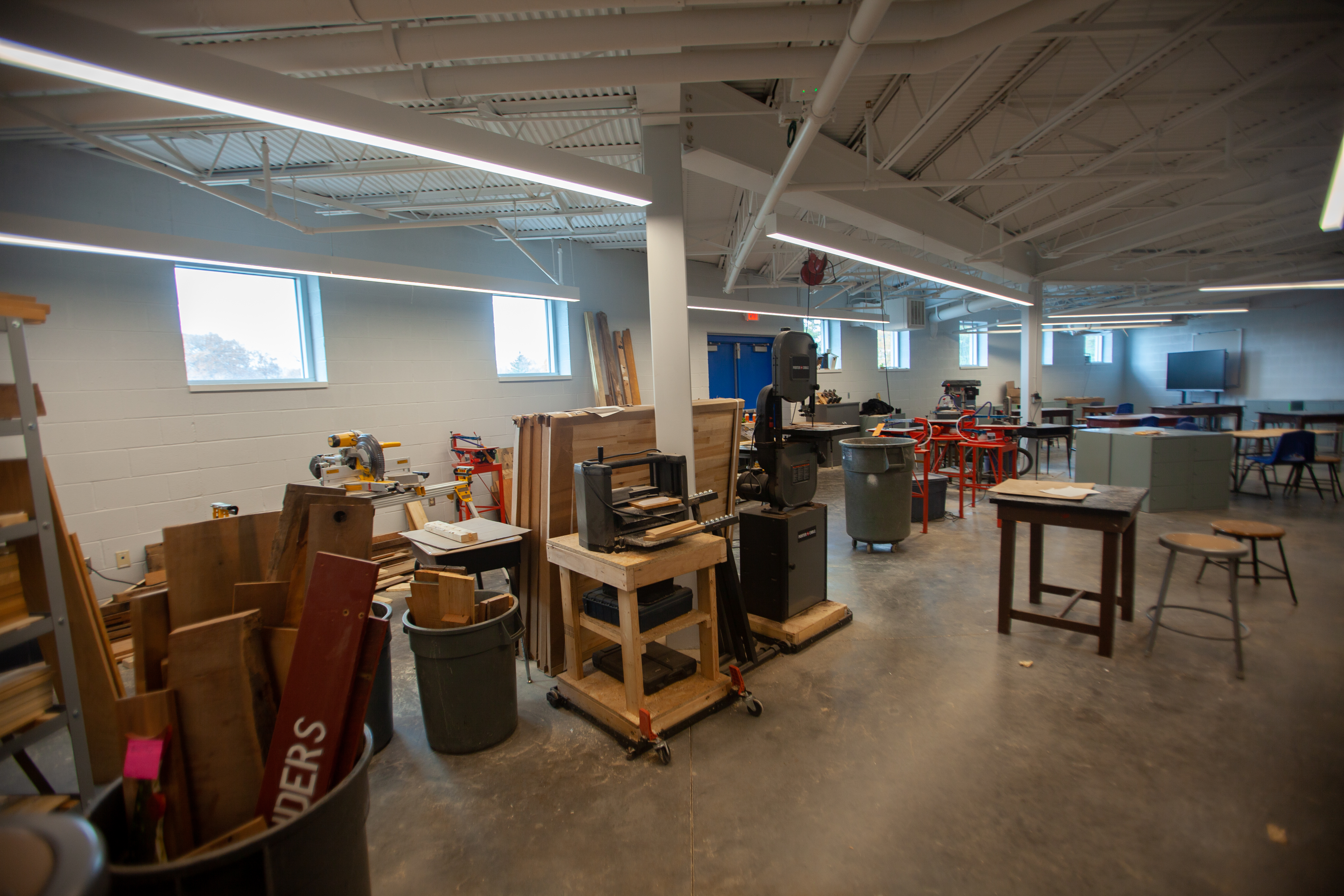 Inside the addition is a new cafeteria and kitchen. For their music program, band, strings, and chorus rooms were moved into the addition. Furthermore, new maker space and a technology education woodshop were also created.