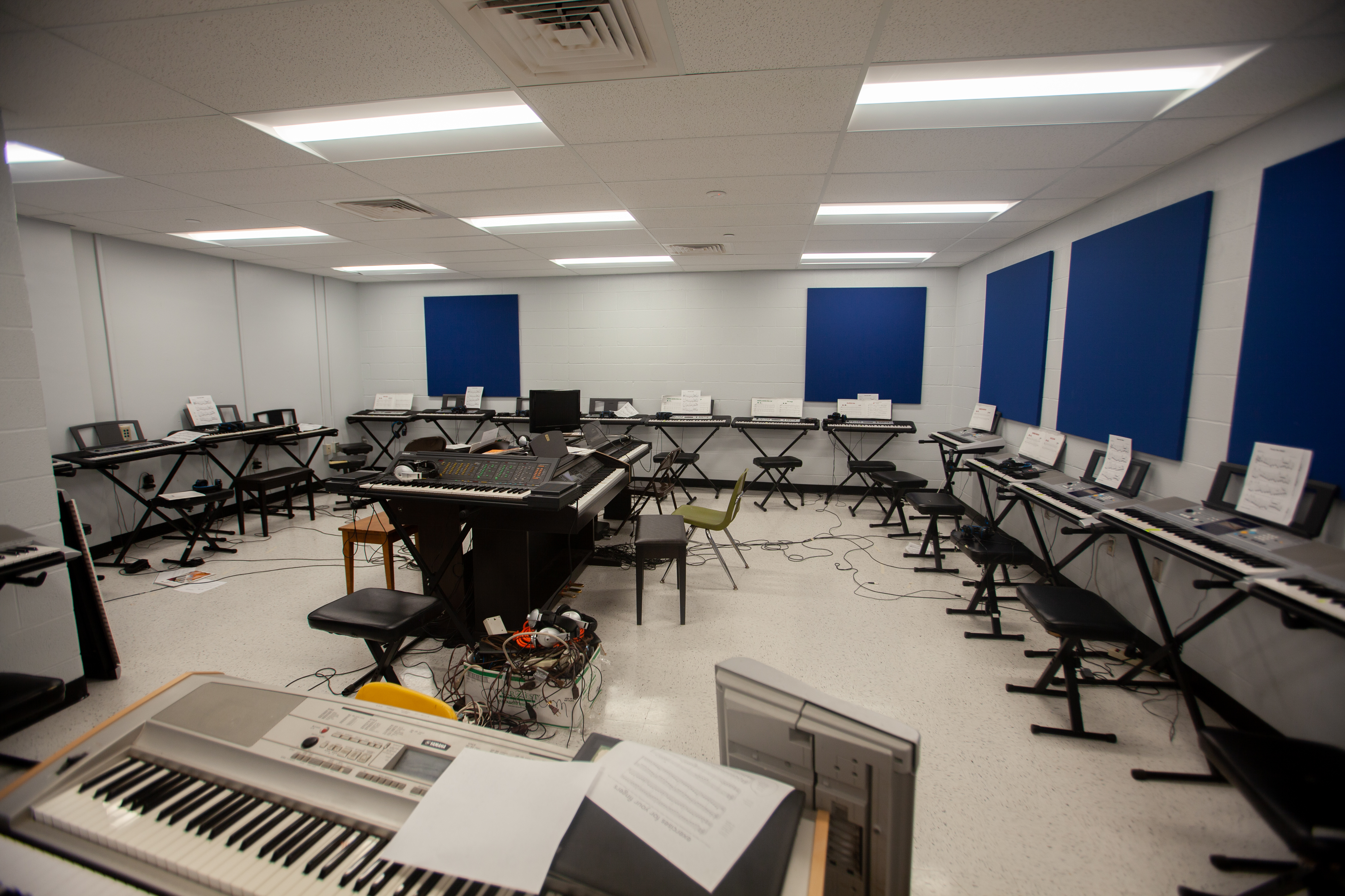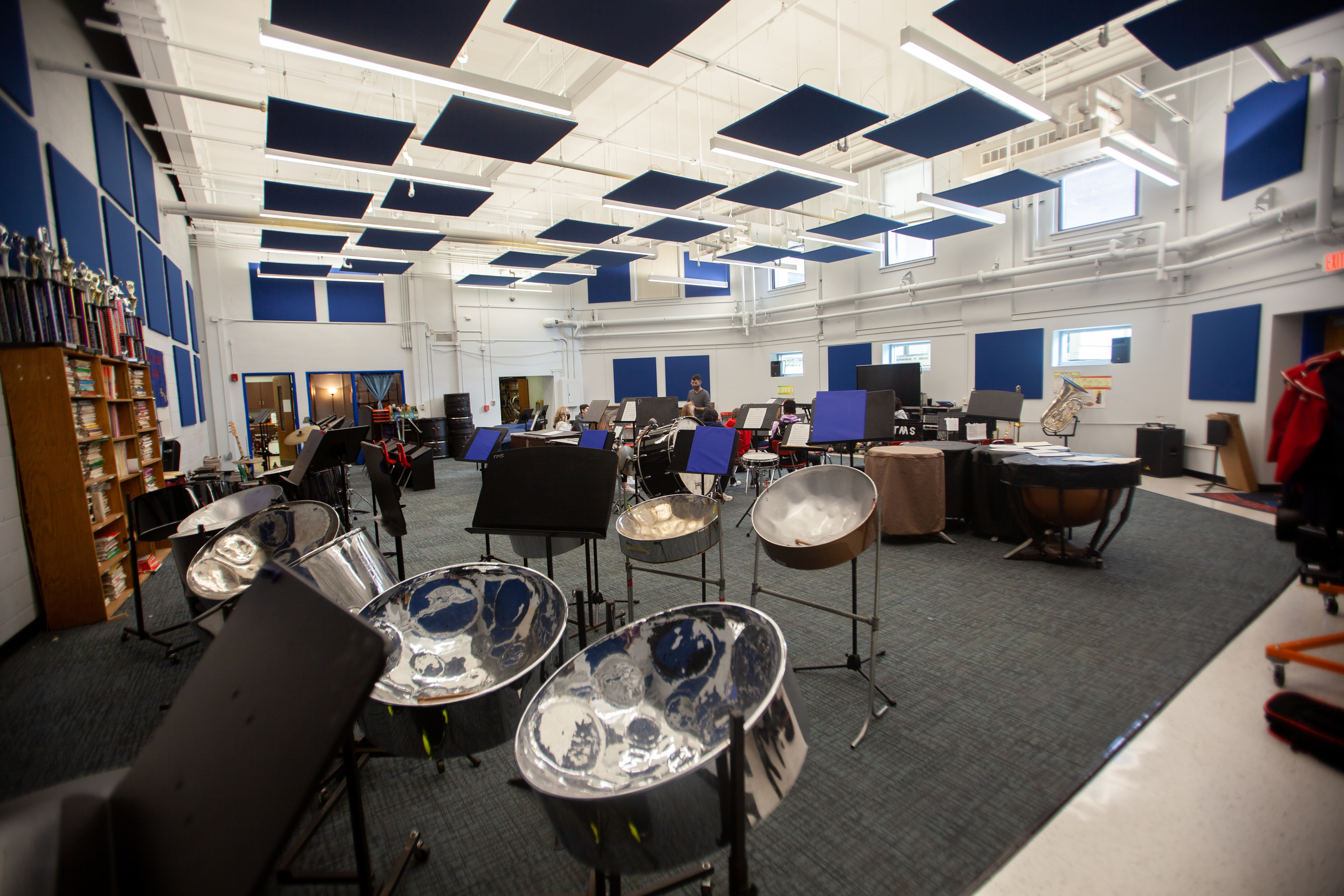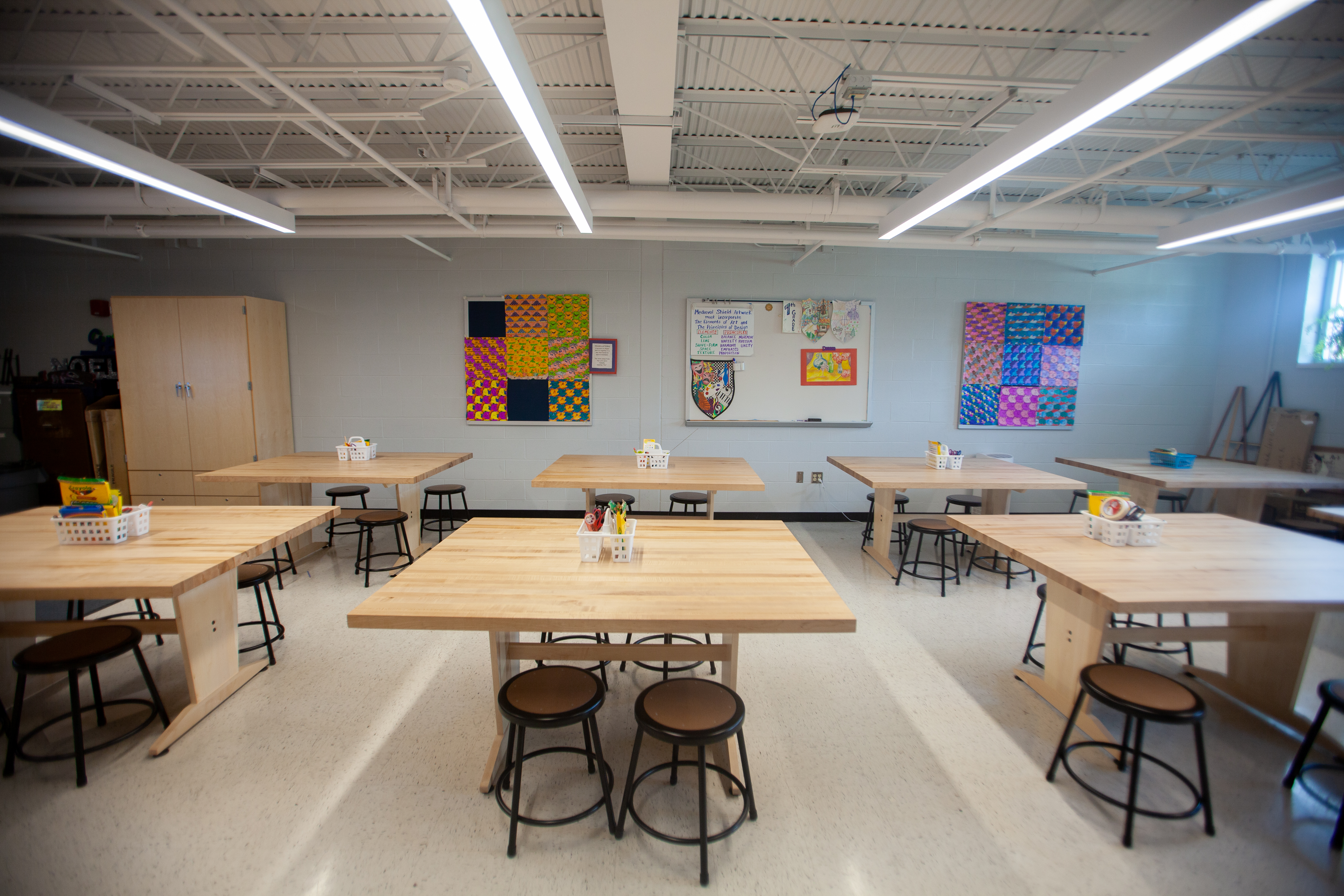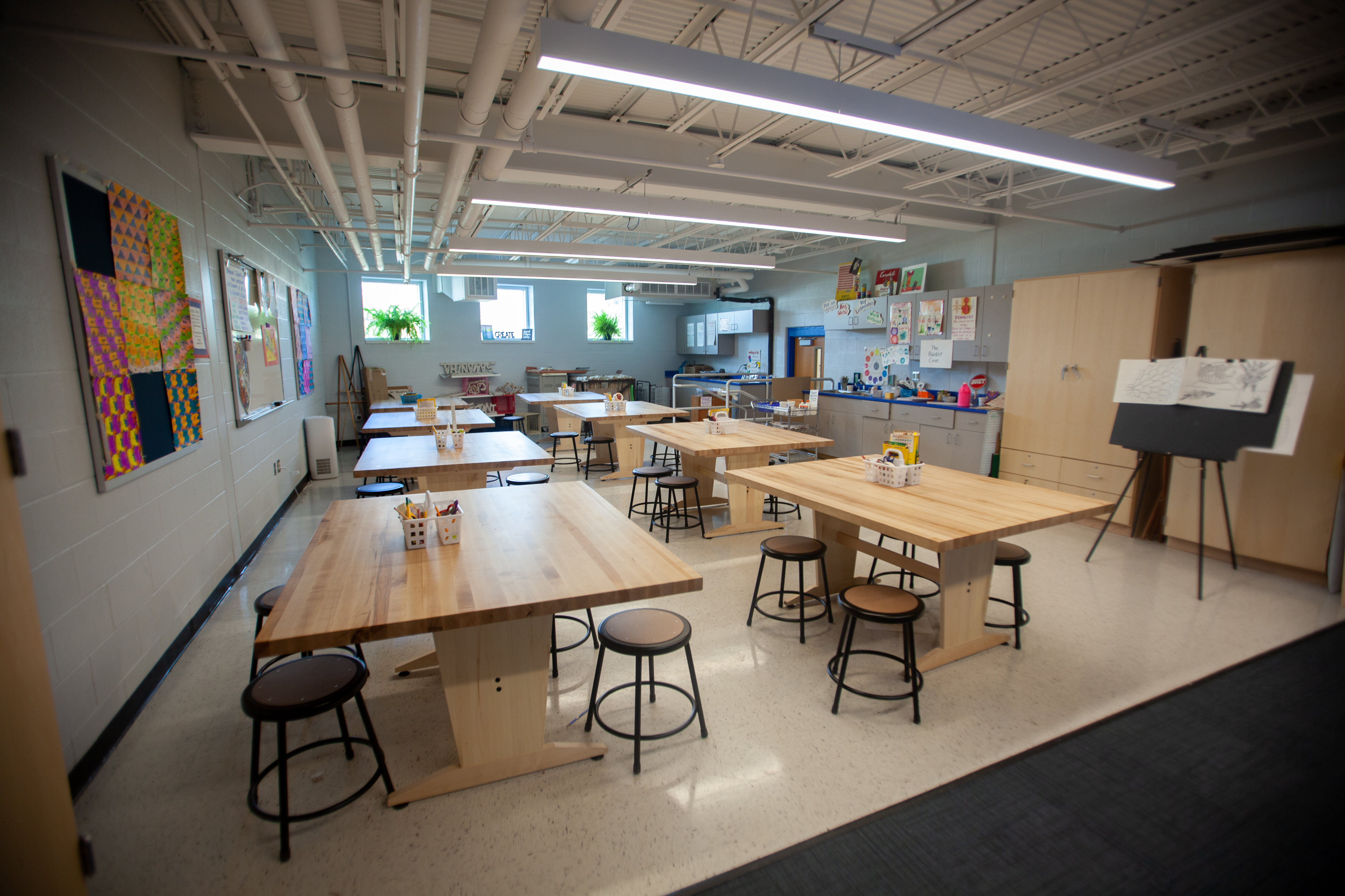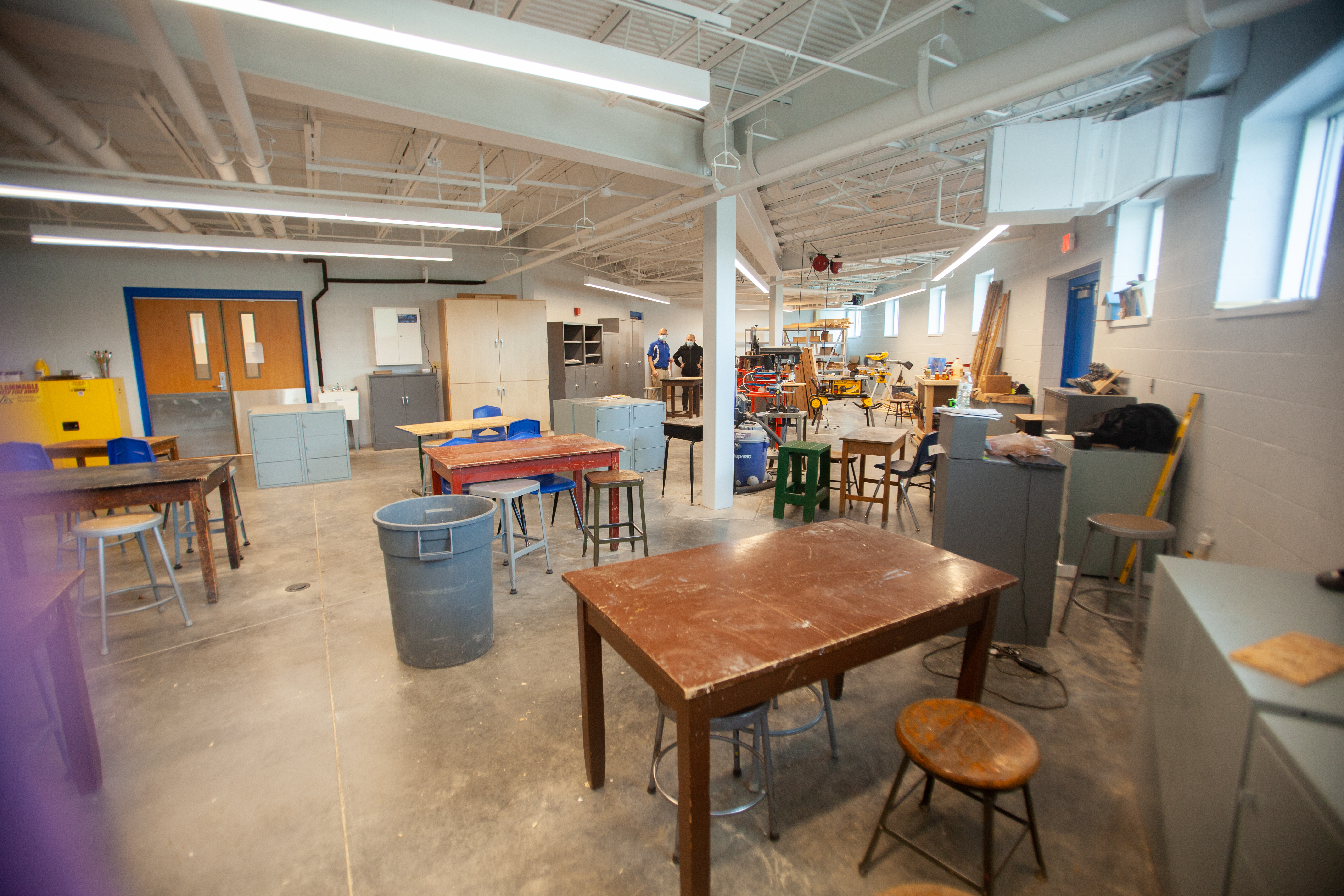 Inside the addition is a new cafeteria and kitchen. For their music program, band, strings, and chorus rooms were moved into the addition. Furthermore, new maker space and a technology education woodshop were also created.