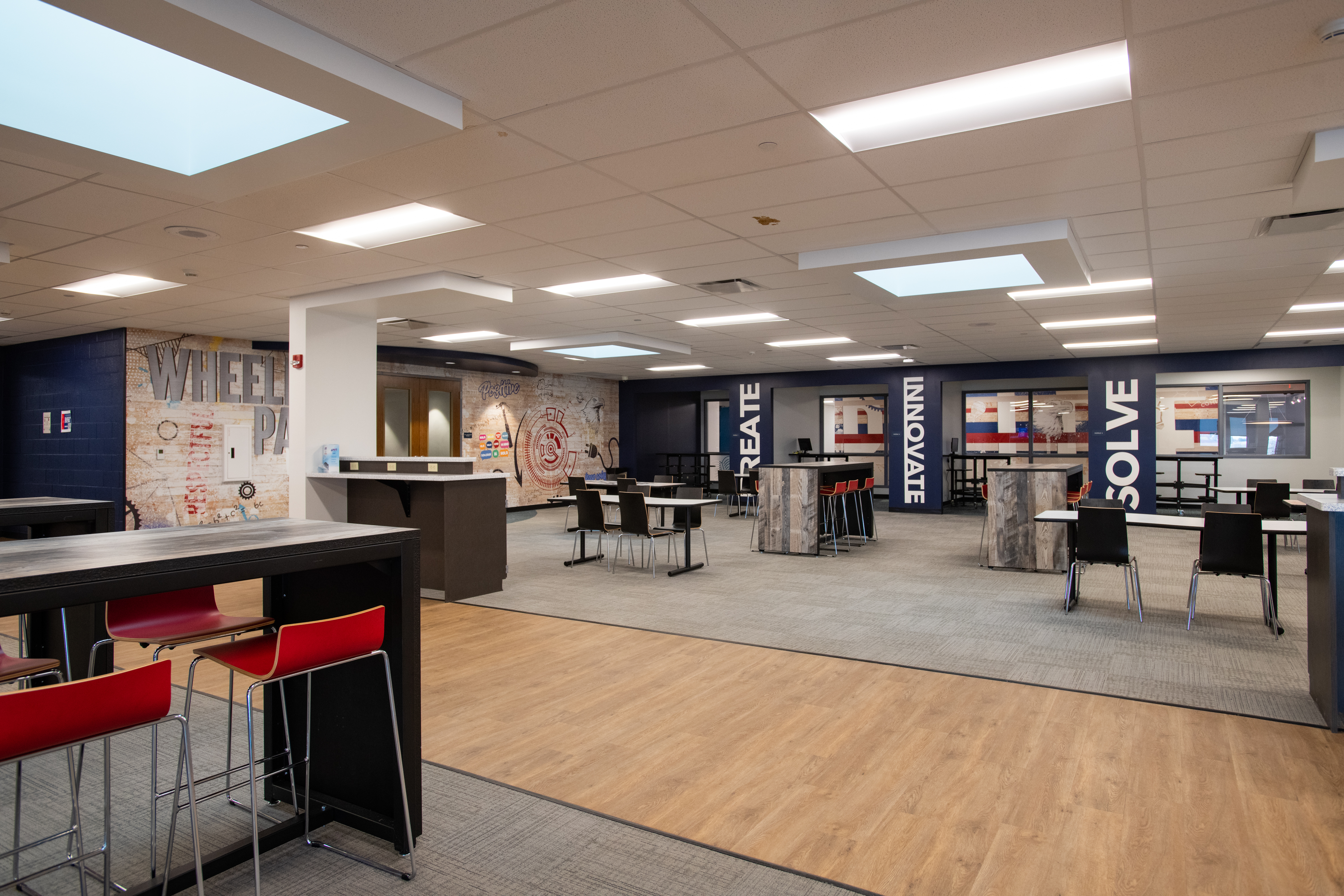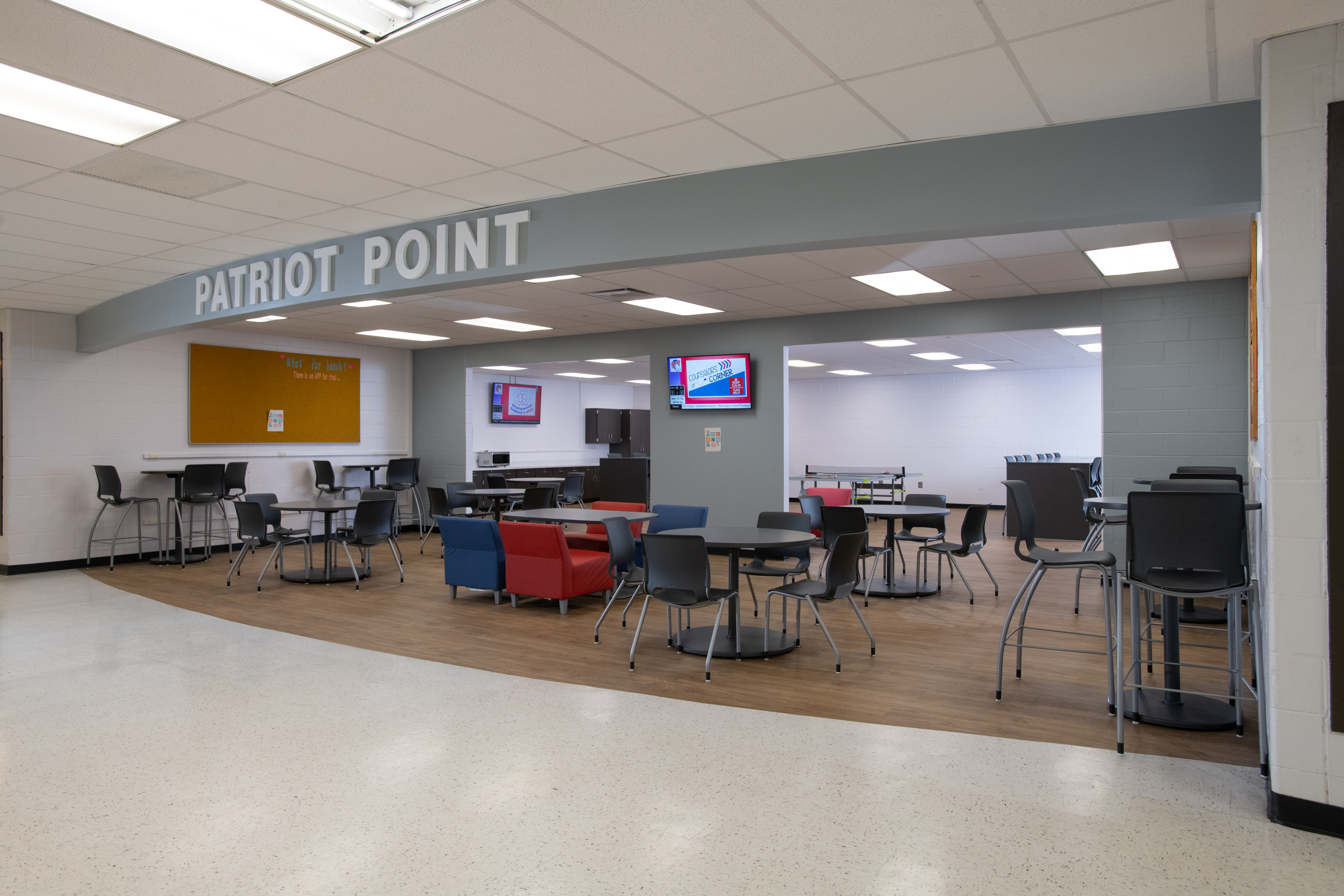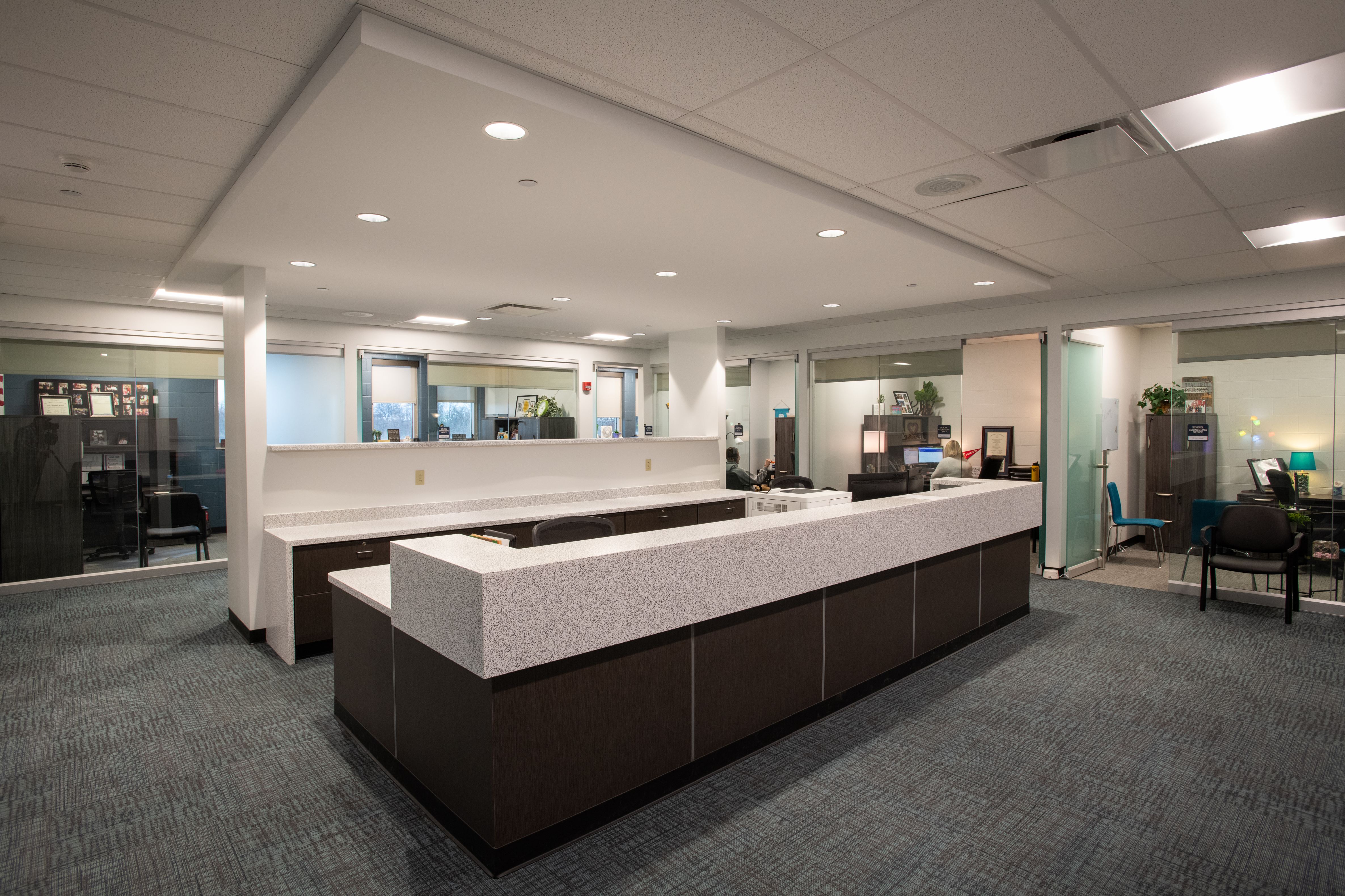 McKinley addressed some of the county’s concerns at the school, focused on student security and building utilization, and updated some areas of the original building. One of the focus areas was the construction of a new main building entrance with a security vestibule and a new administration office to control access to visitors to the building. The new administration office provides better integration between the main office, guidance counselors, and student services.