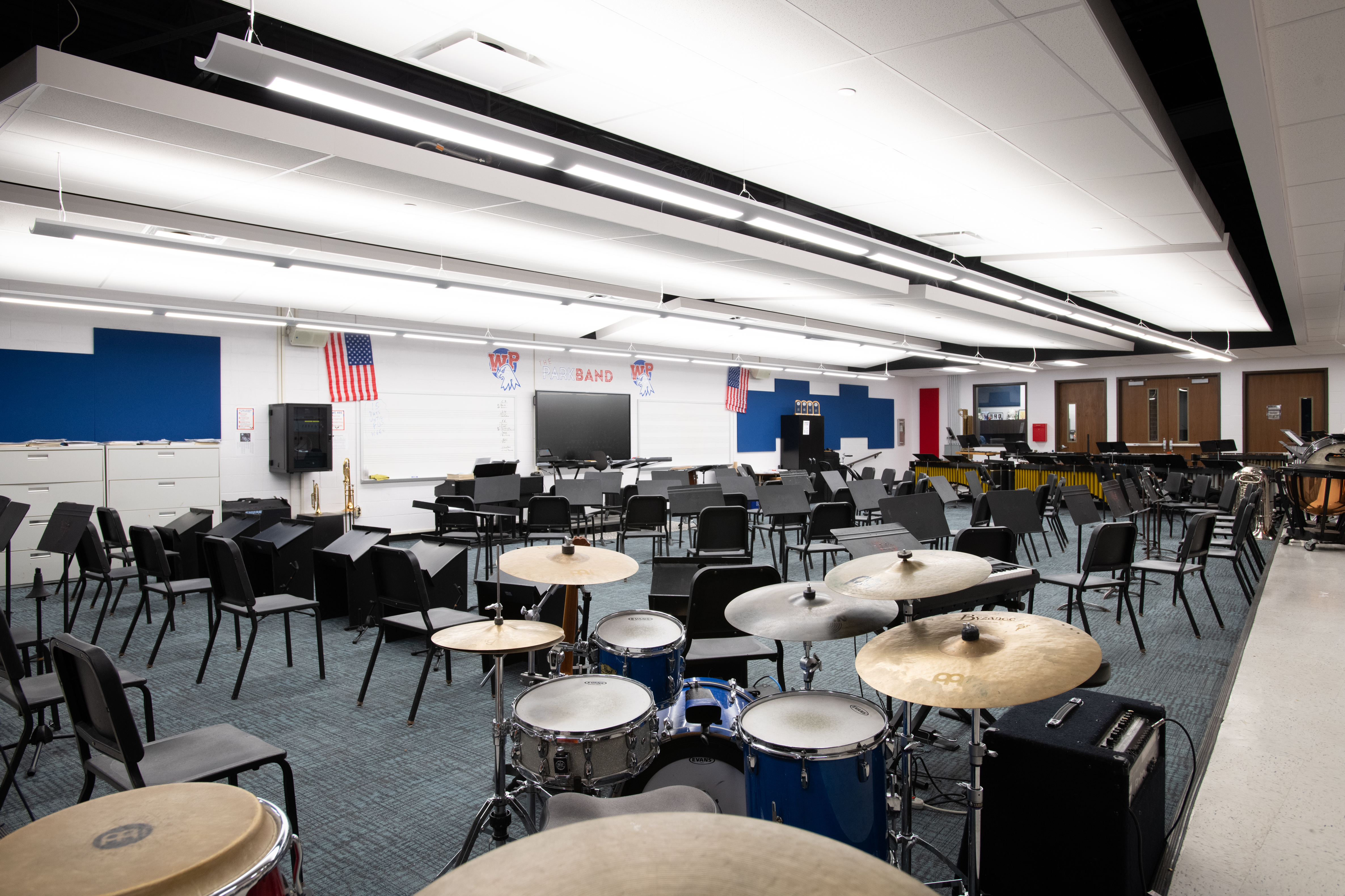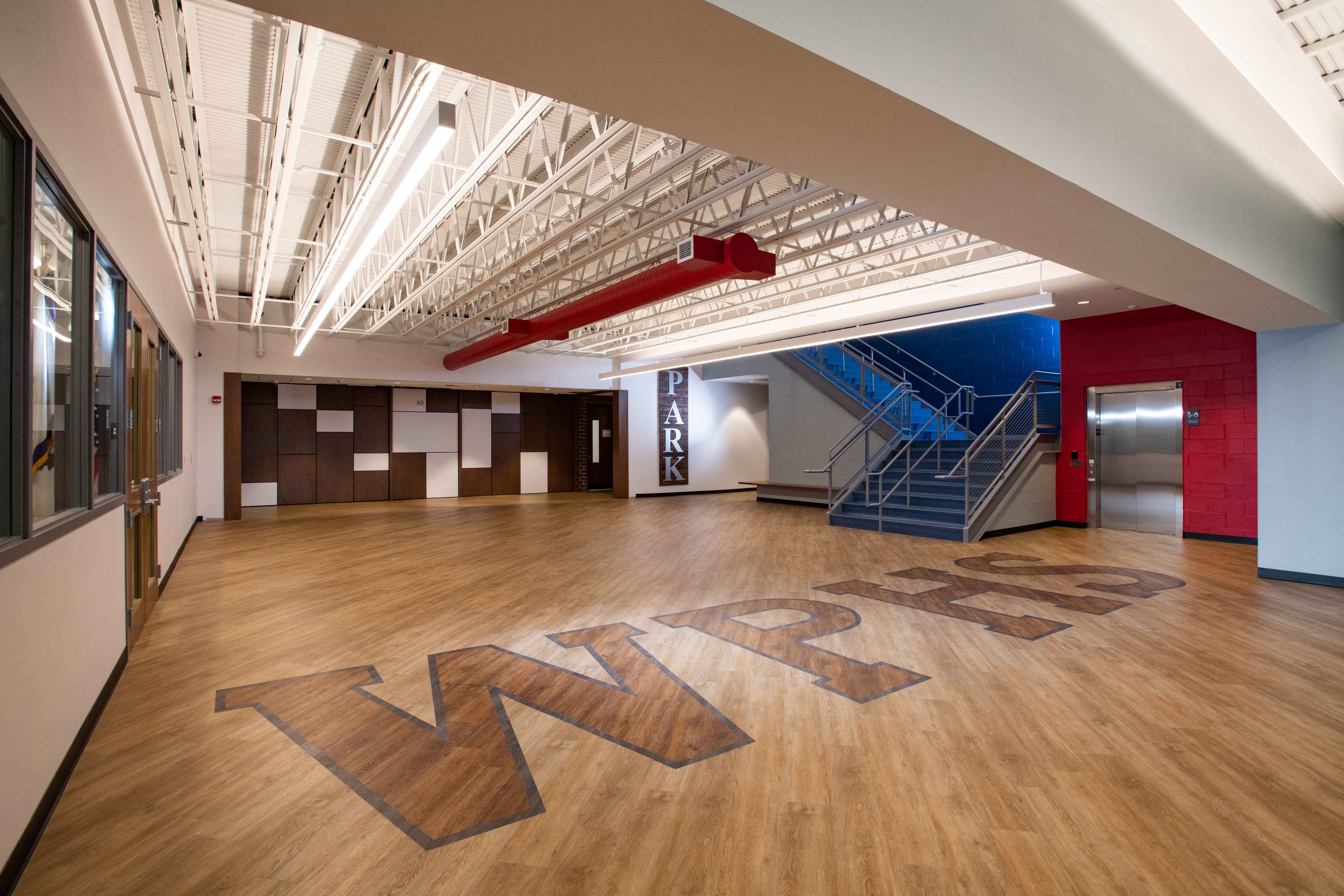 In the gymnasium, we completed bleacher renovations with a custom design that includes “WP” for their school name.
