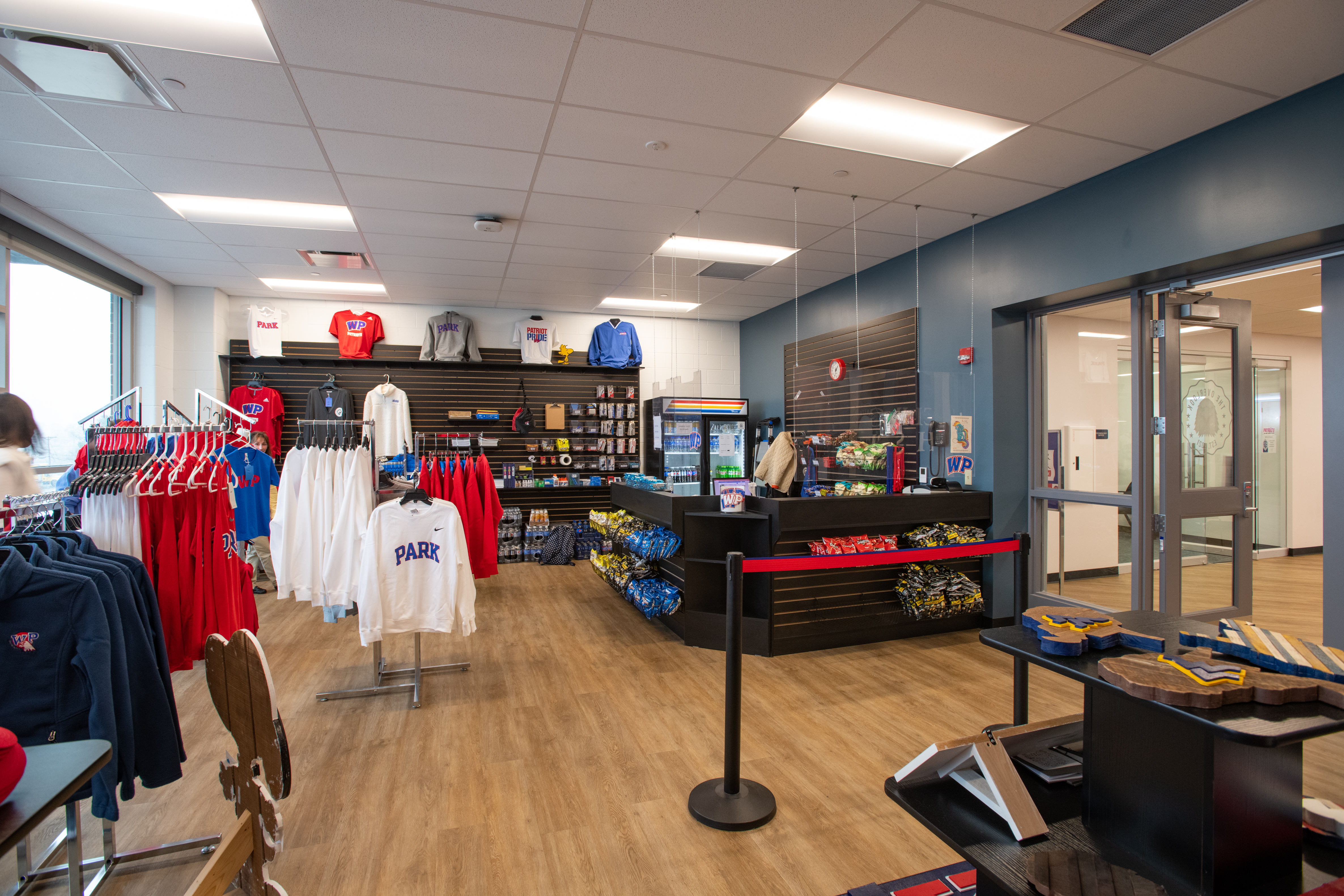 The Overlook – aptly named for it has a great view of the dramatic cascading hillside of the park – a new school store, sells everything a student (and Alumni) needs to be a Park Patriot, including shirts, hoodies, and more. Some of the Patriot apparel is even designed by the students.